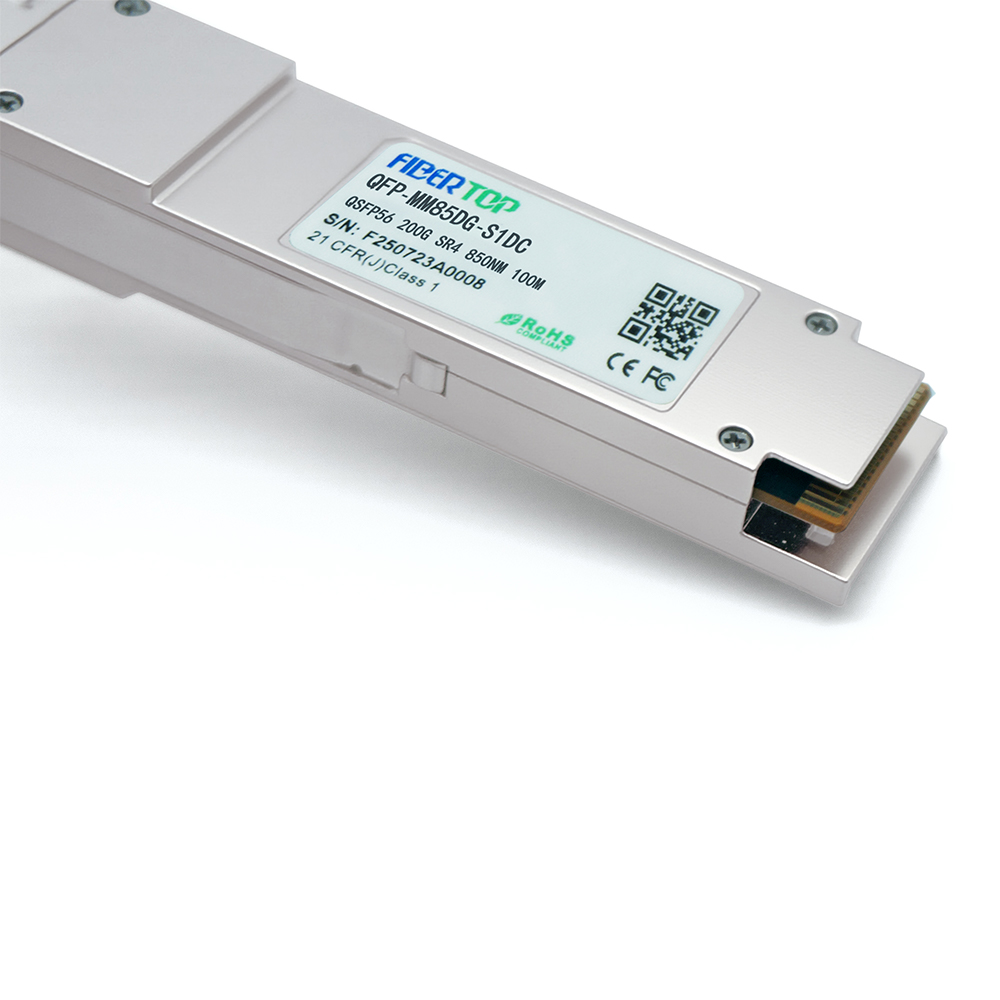 SKU: QFP-MM85DG-S1DC-FSZ 製品のハイライト ホットプラグ対応 QSFP56 トランシーバー 212,5Gbpsの総ビットレートをサポート チャネルごとに最大 53.125Gbps のデータレート SFF-8665 準拠の QSFP56 ポート、SFF-8636 準拠の I2C 管理 IEEE802.3cd 200GBASE-SR4に準拠 UPC 端面付き MPO-12 コネクタ レセプタクル OM4 MMF の最大リンク長は 100m 3.3V単一電源 低消費電力(<4.5W) RoHS対応 動作ケース温度: 0 ~ +70°C